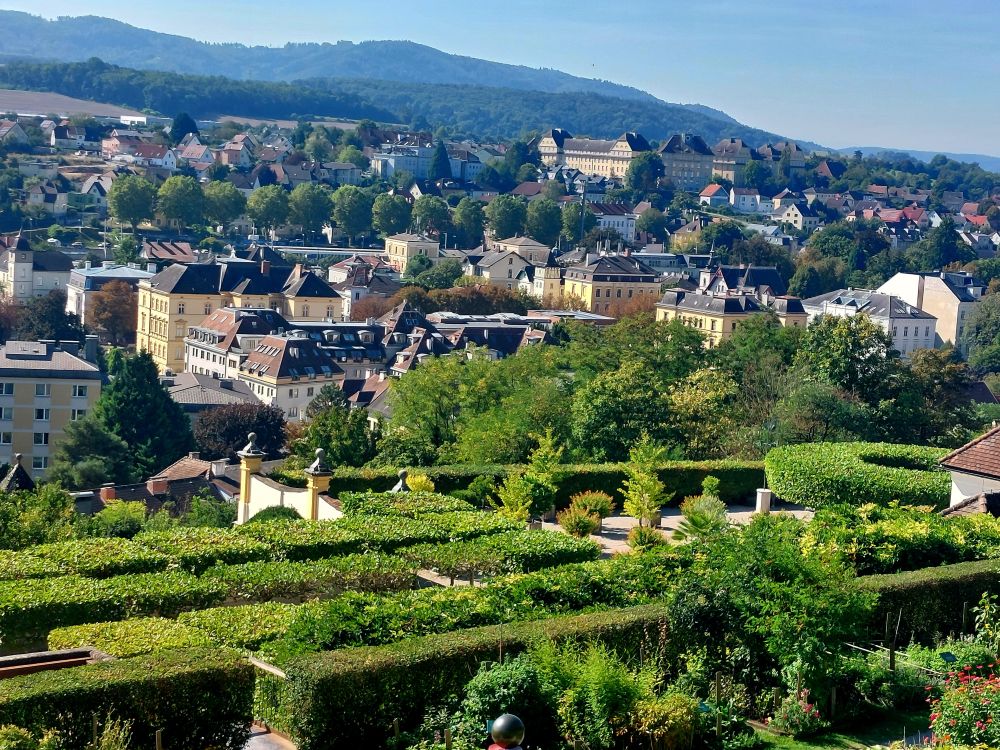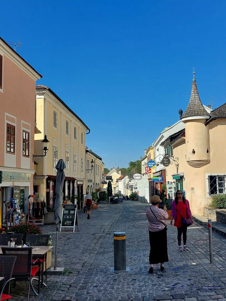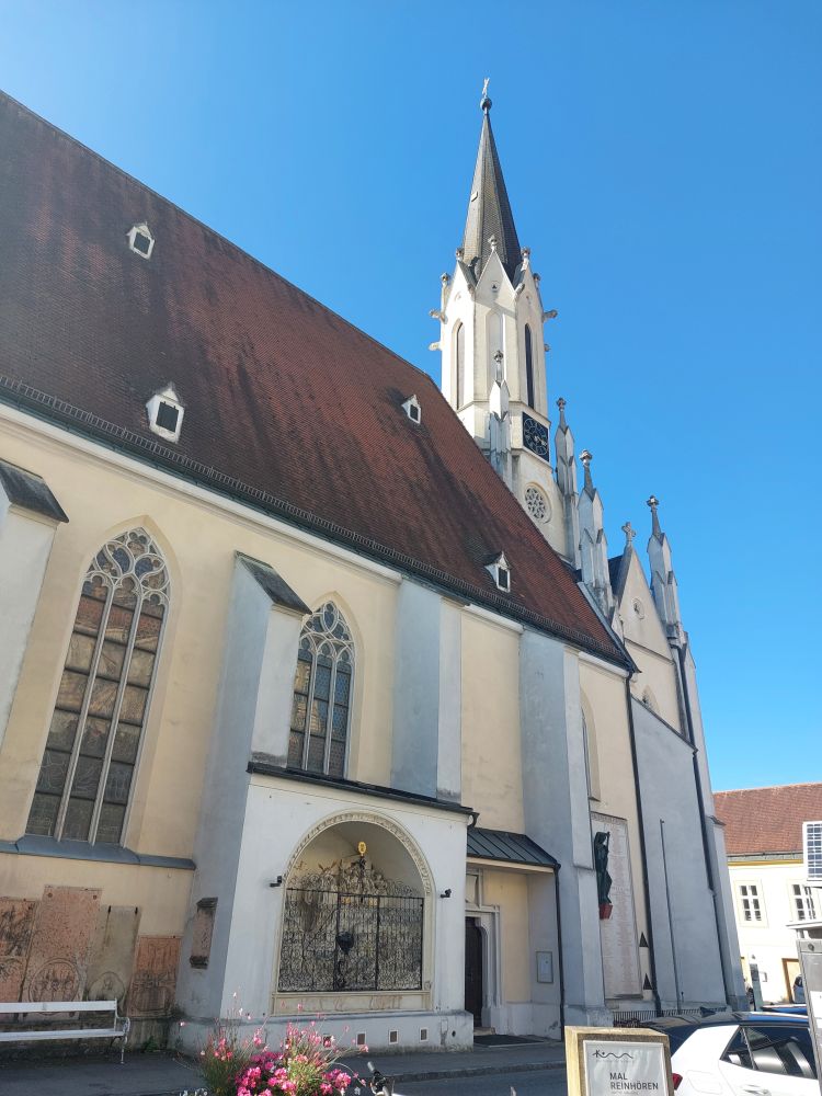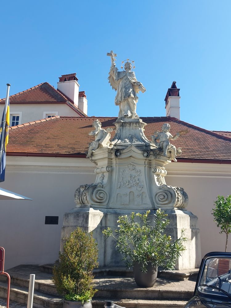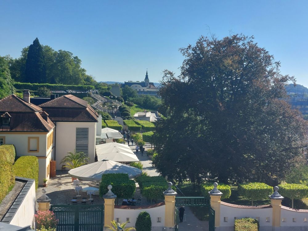 Wir schlendern durch die belebte Stadt und das schöne Wetter hat viele Menschen auf den Platz gelockt. Wir wollen hinauf zum Stift Melk, wieder bergauf 😊 Aber es sind nur ein paar Minuten und wir haben es geschafft. Dort oben sind die ersten Reisebusse angekommen und wir beschließen, uns das Kloster nicht anzuschauen, sondern uns statt dessen auf die Gartenanlage und der Aussichtsterrasse zu beschränken. Immer mehr Reisegruppen kommen an und wir machen wieder auf den Weg in die Altstadt hinunter. Wir genießen noch ein wenig die schöne Musik und gehen dann zum Womo.