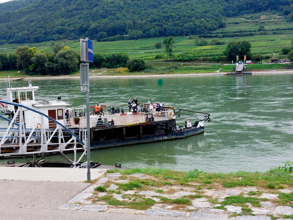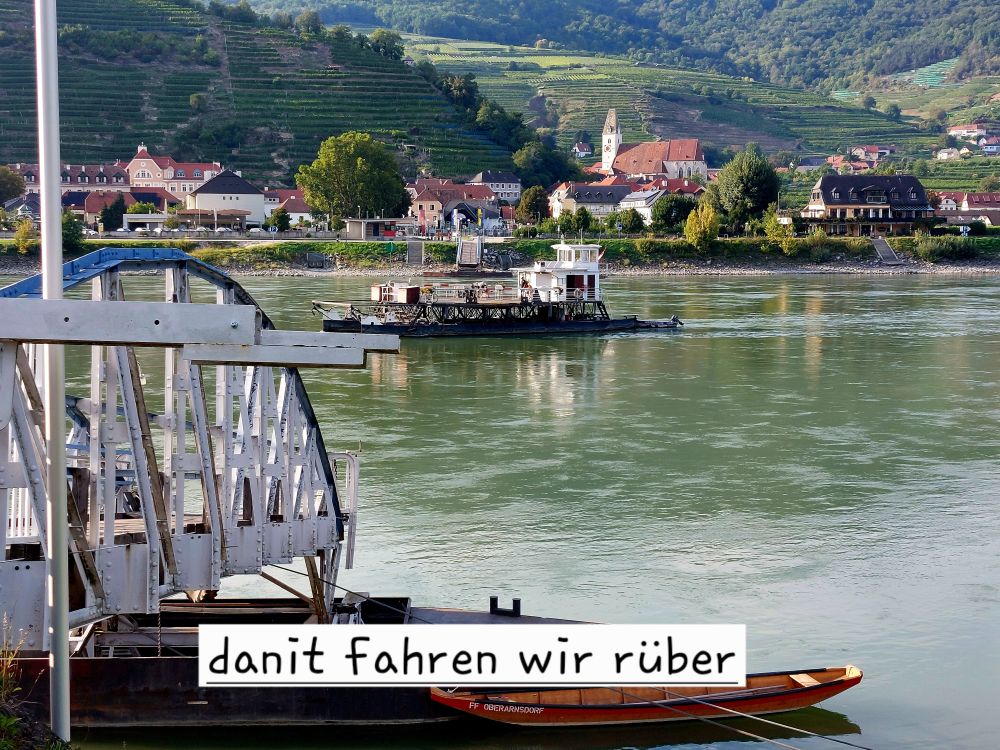 Dort angekommen, fahren wir erst einmal rüber auf die andere Donauseite um dort durch die Wachau bis Spitz zu fahren. Sehr schöne Strecke und als wir in Spitz ankommen, kommt gerade die Fähre rüber.