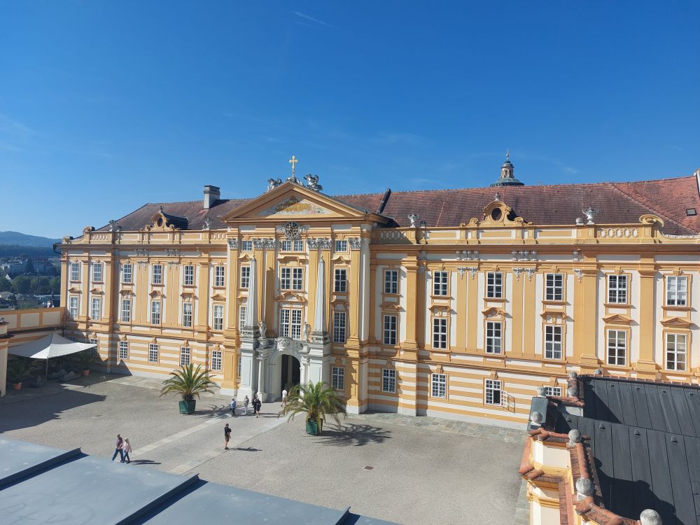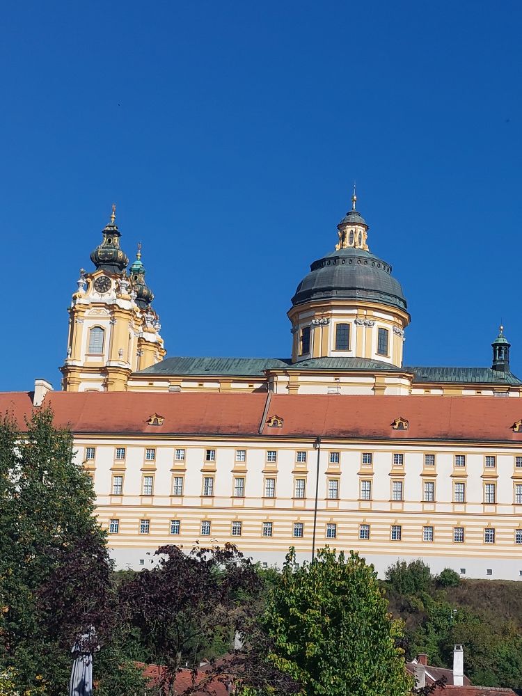 Heute morgen ging es weiter, die Donau entlang Richtung Wien. Das Wetter ist schön, der Nebel steigt von der Donau auf….wunderschön. Als wir an unserem Zwischenstopp Melk ankommen, ist strahlend blauer Himmel.