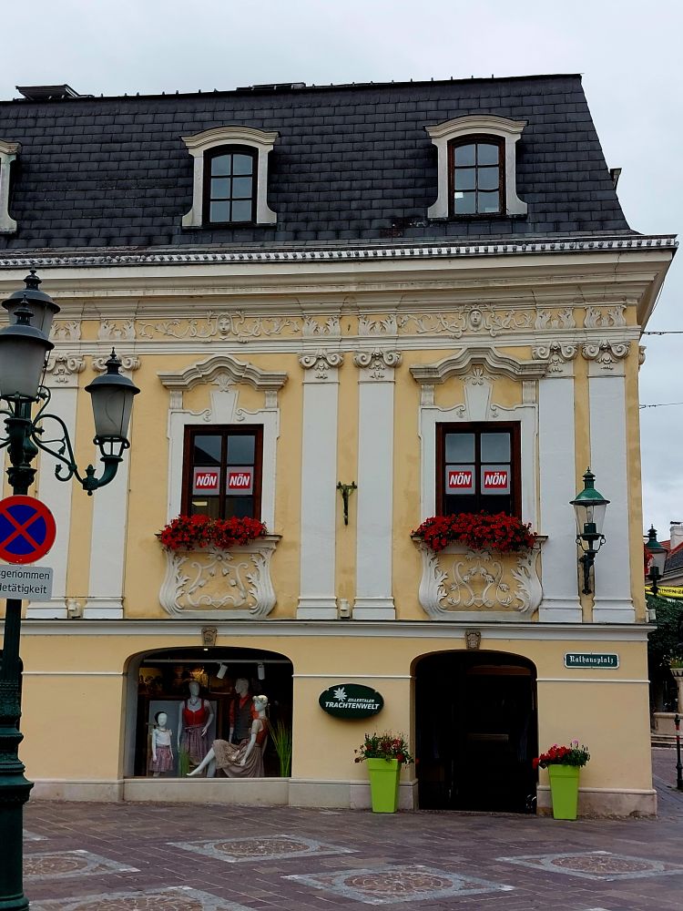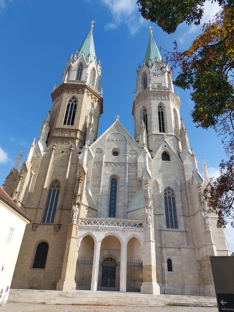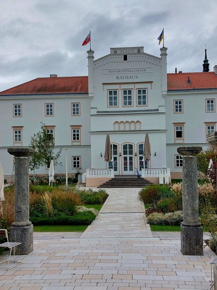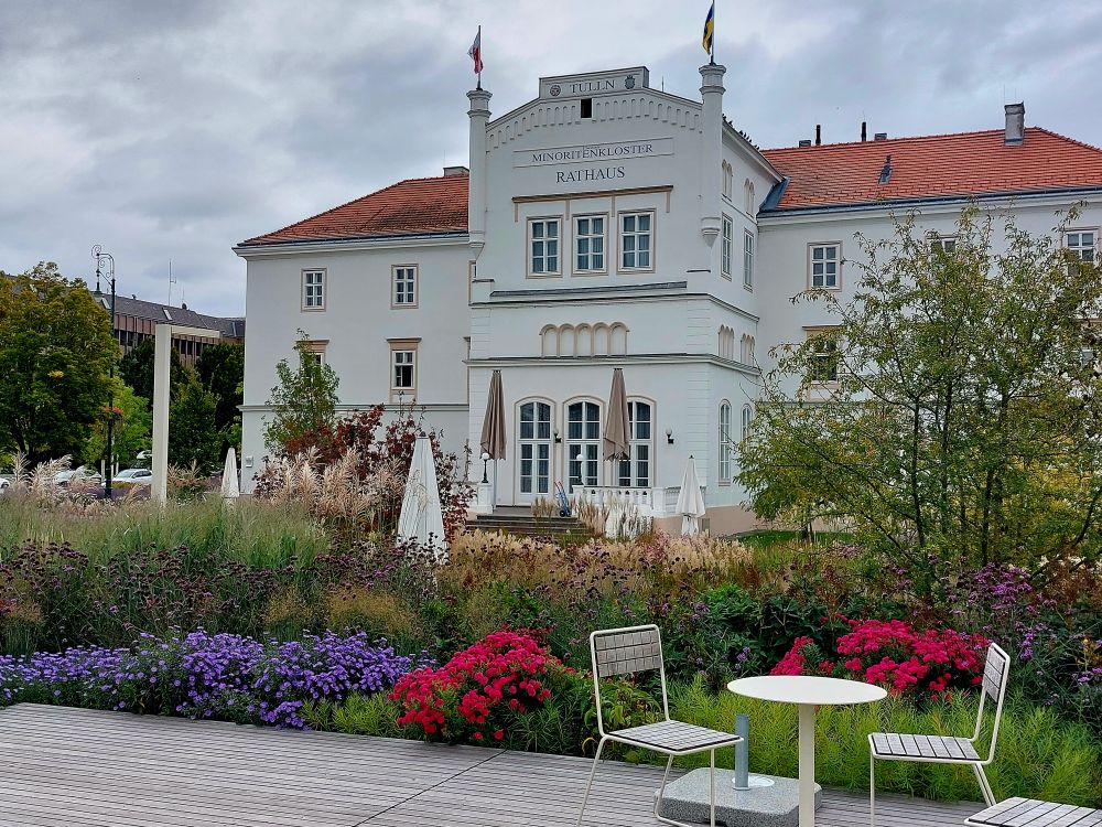Heute Morgen ist das Wetter nicht so schön. Die Sonne lässt sich nicht sehen und es ist kälter geworden. Wir starten um 9:30 Uhr nach Klosterneuburg. Einen Zwischenstopp machen wir in der Gartenstadt Tulln. Wir haben Glück und finden am Nibelungenplatz einen Parkplatz, der es zulässt, dass wir hier parken. Wohnmobile möchte man aber offensichtlich auch hier lieber auf dem Campingplatz haben. Aber: wir wollen nur einen kurzen Stopp einlegen, um den Ort anzuschauen. Wieder ein netter kleiner Ort, durch den wir schlendern. Da es kalt geworden ist, sind die Biergärten und Außenlokale nicht besucht.