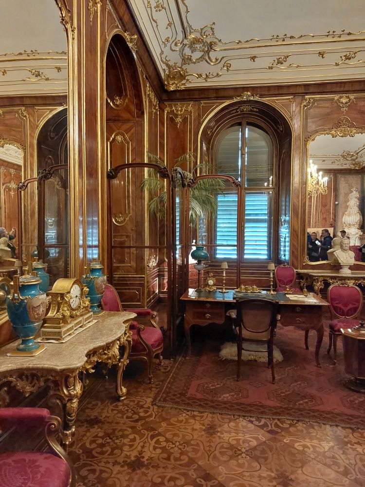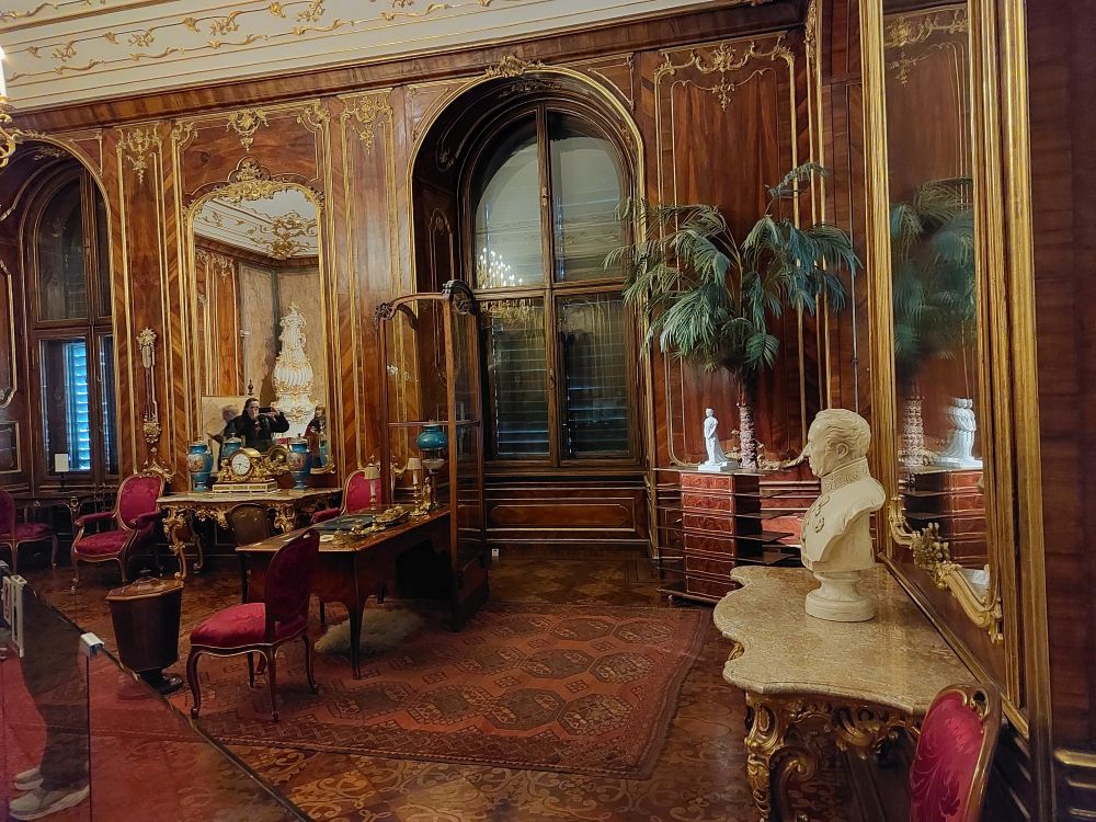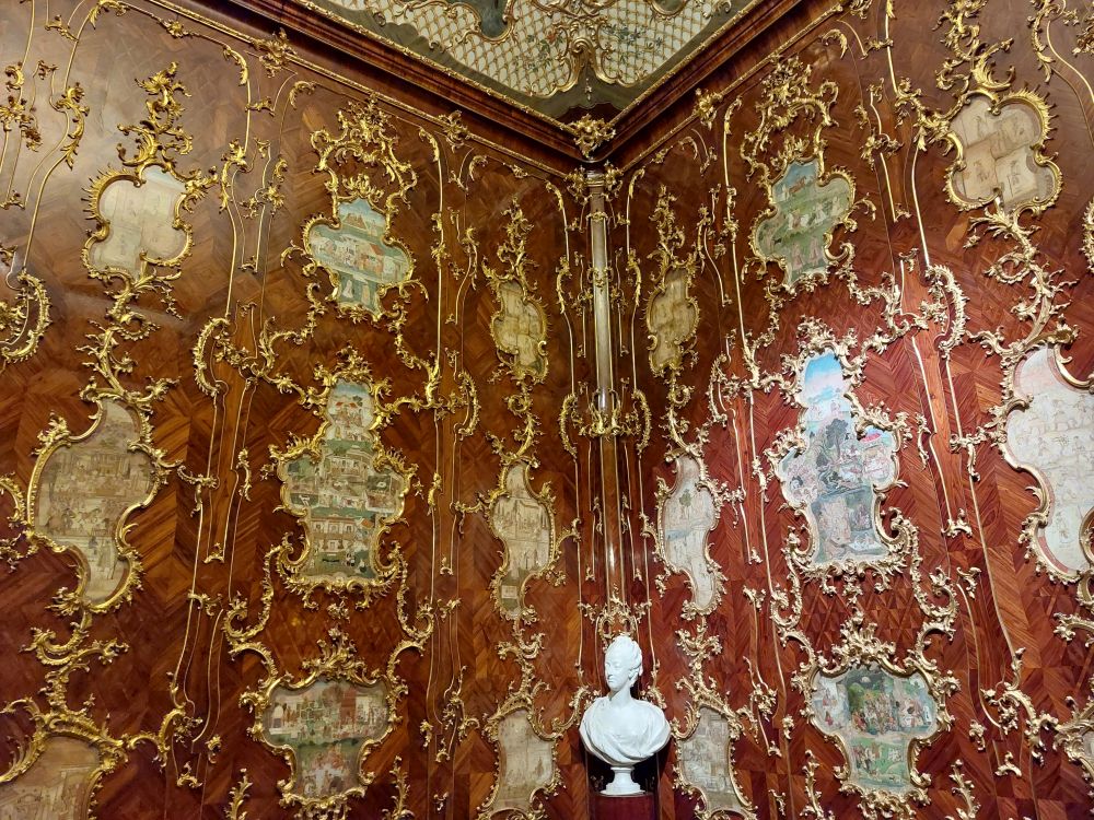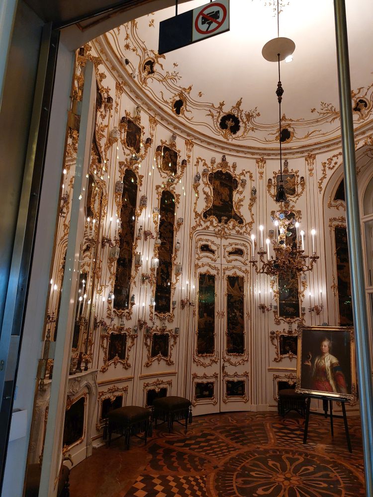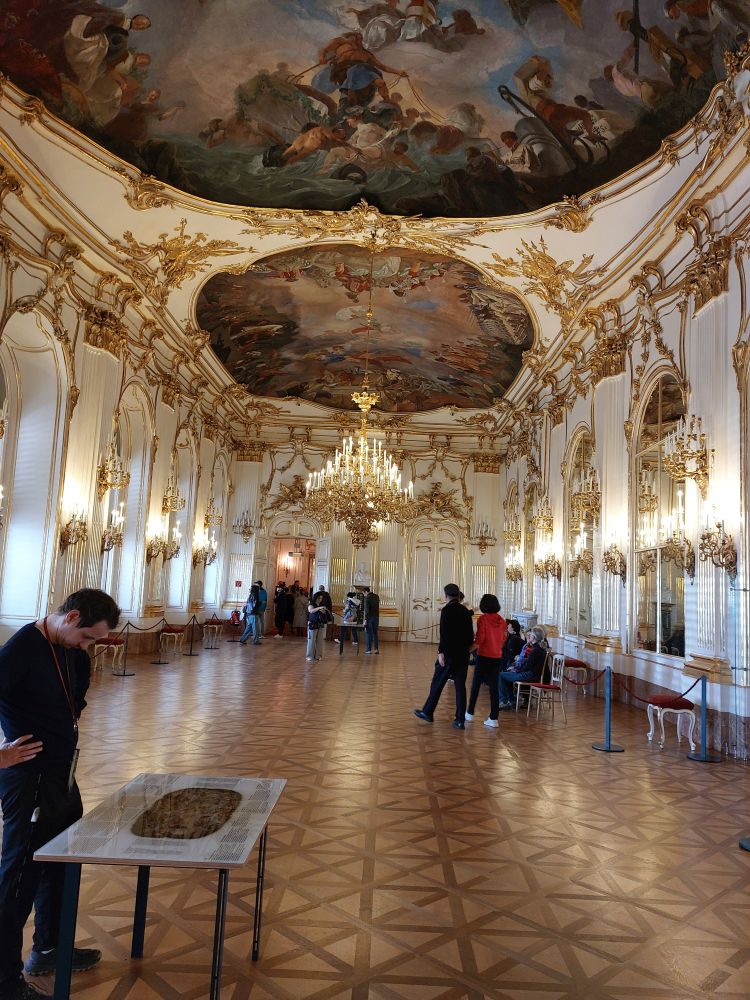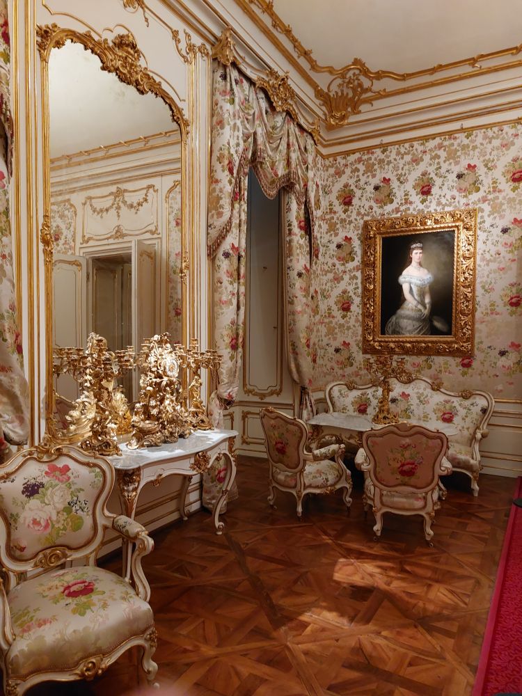Das Reitturnier ist in vollem Gange und deshalb ist hier auch noch mehr Betrieb, wie an anderen Tagen. Ich stelle mich also in die Schlange und komme exakt um 13:30Uhr rein zur Besichtigung der 40 Räume. Die Führung ist mit Audio Guide und es ist in den einzelnen Räumen erstaunlich ruhig. Ich lasse eine größere Gruppe erst einmal vorgehen und dann ist es total entspannt. Wunderschöne Raume, die ich natürlich alle fotografieren muss….für meine Erinnerungen später. Nach 1 Stunde bin ich durch und gehe in den Schlossgarten. Ich darf jetzt auch auf die Aussichtsplattform und von dort mache ich noch ein paar Fotos.