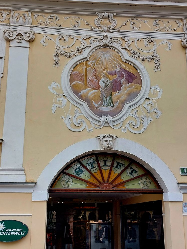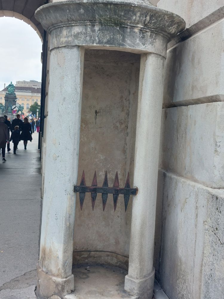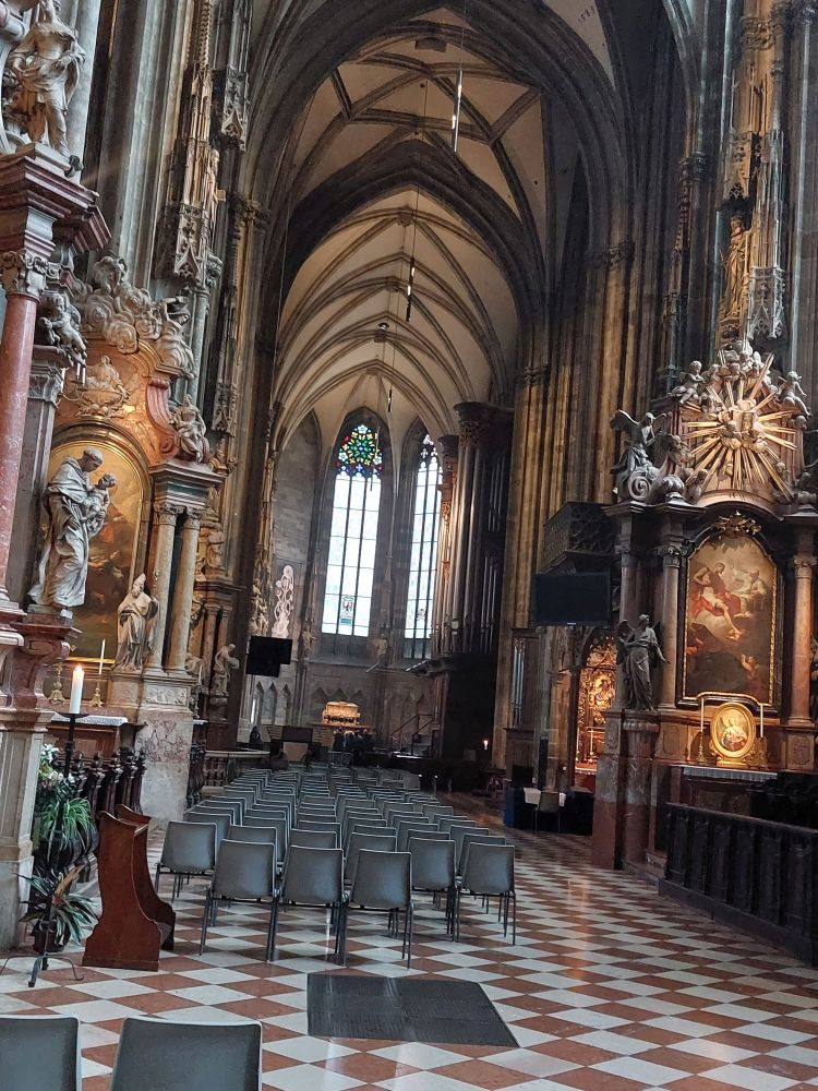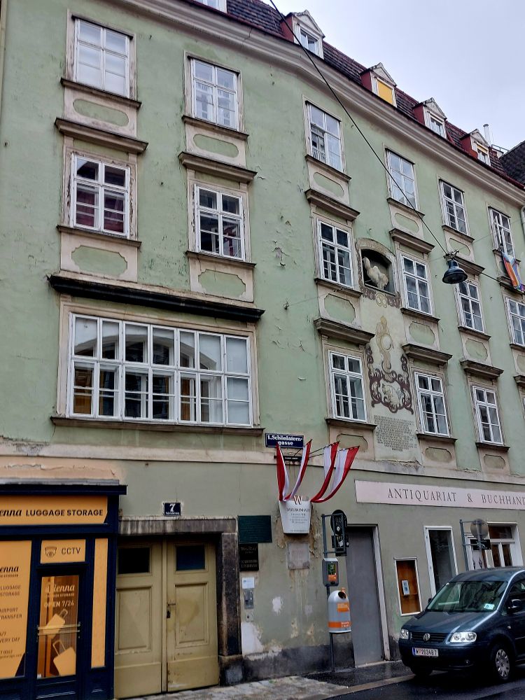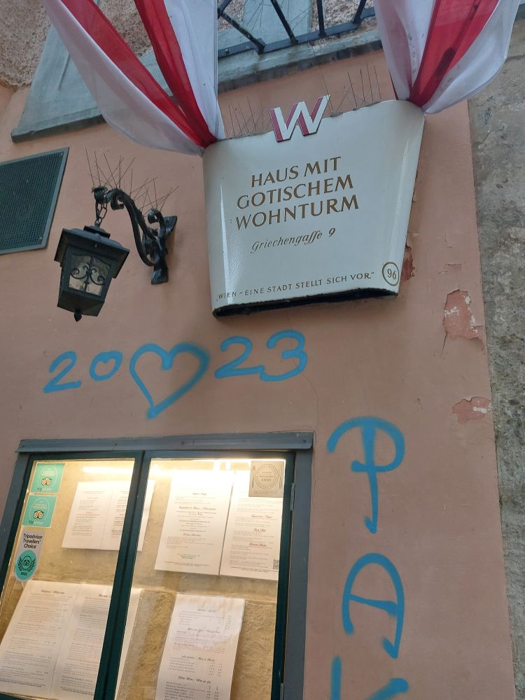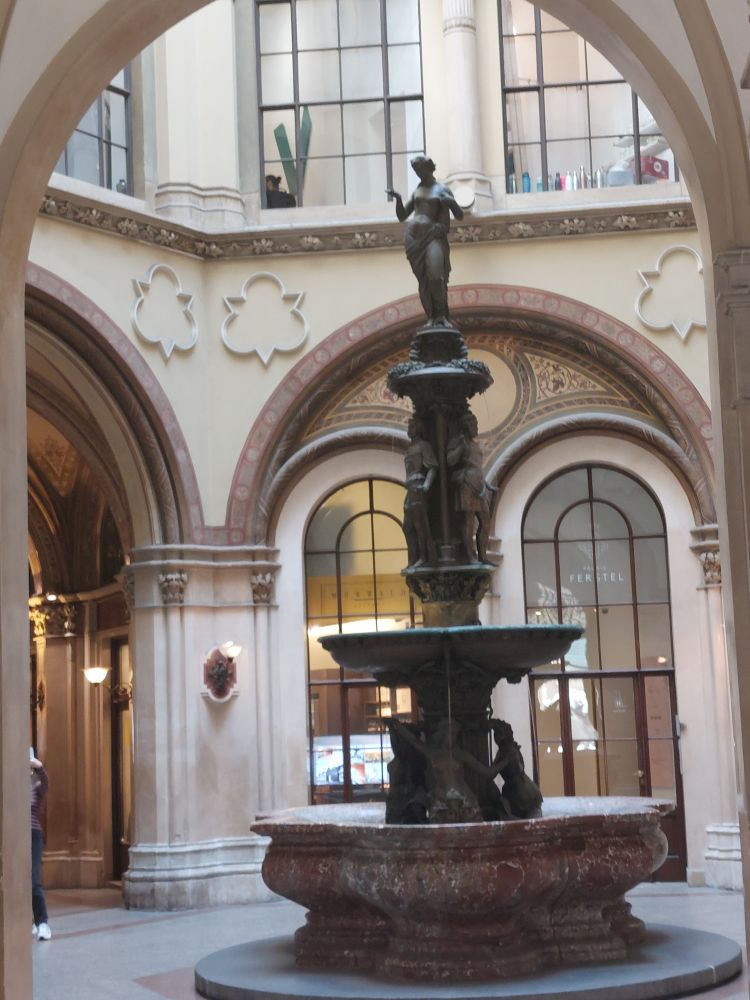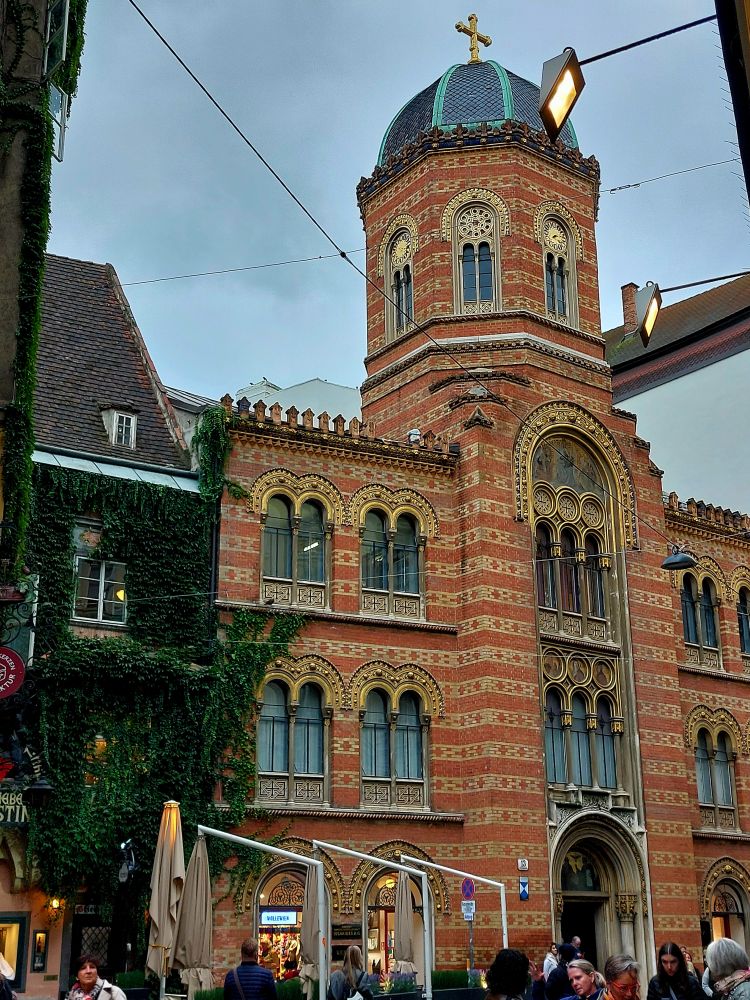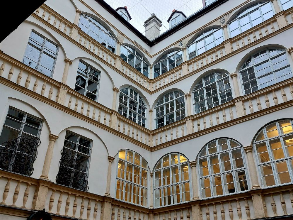 Leider ist immer noch schlechtes Wetter, aber ich beschließe, noch ein wenig in Wien herumzuschlendern. Ich fahre mit der U4 bis Karlsplatz und steige dann in die U1 bis Stephansplatz. Dort tobt das Leben, es ist rappelvoll. Ich gehe zwar in den Dom hinein, mache aber nur am Eingang ein paar Bilder, Eintritt zu bezahlen bin ich nicht bereit. Ich war mit Marlies und Gabi 2013 bereits einmal ausgiebig im Dom, das muss ich nicht widerholen. Dafür zünde ich aber für Jochen und Heidi eine Kerze an. Jochen (der Mann von meiner Freundin Heidi) wurde heute neben seiner Heidi beigesetzt. Als ich den Dom verlasse, nehme ich meinen Marco Polo Reiseführer und folge den Spaziergangweg, der dort beschrieben ist. Nach einigen Metern stelle ich fest, das dieses der Weg ist, den ich auch mit Marlies und Gabi, in Begleitung einer Stadtführerin gemacht habe. Es geht z.B. zum Heiligenkreuzerhof.
