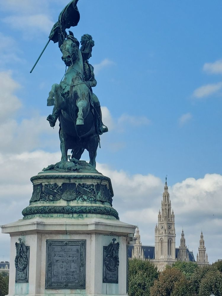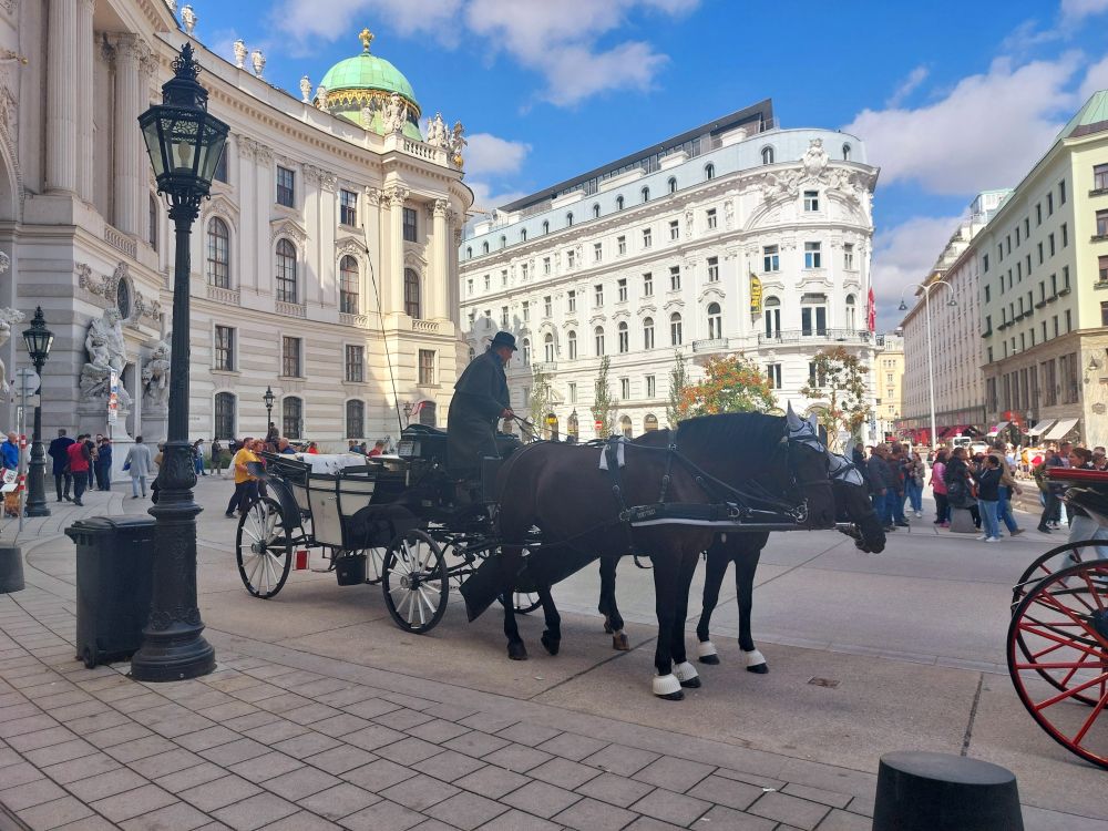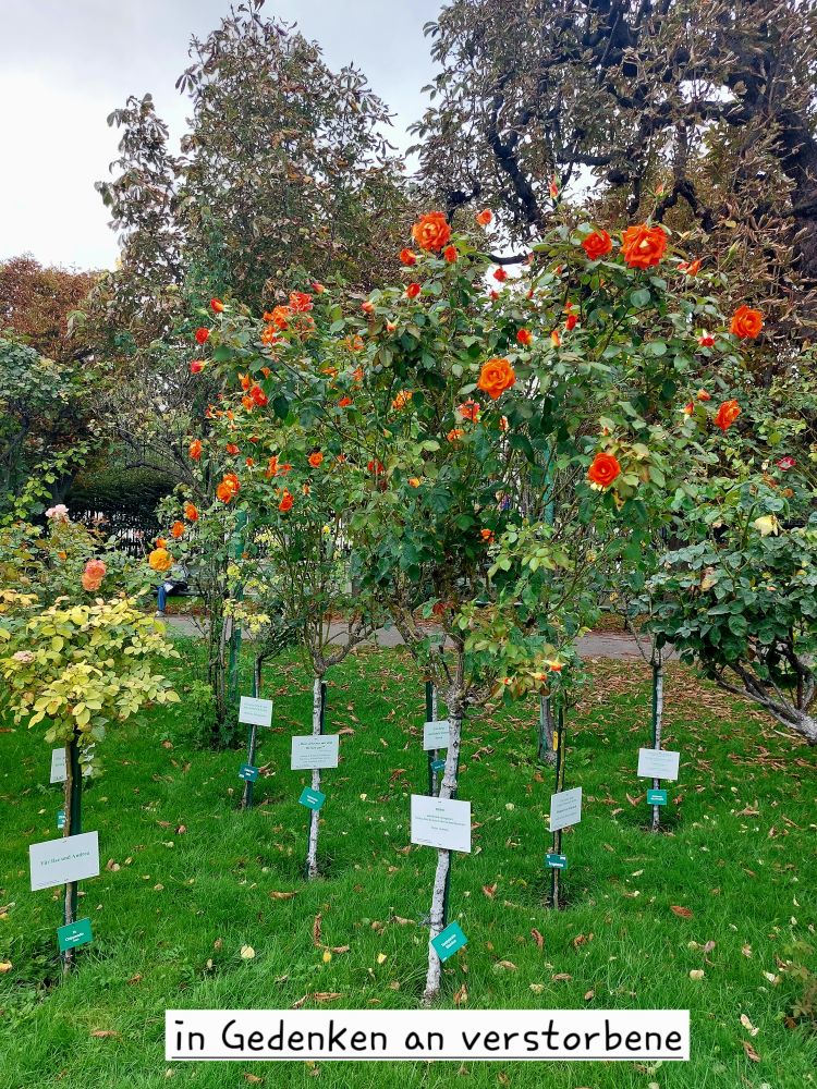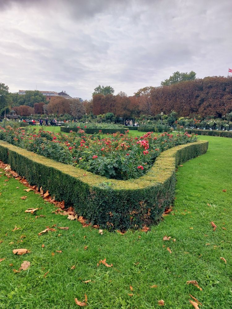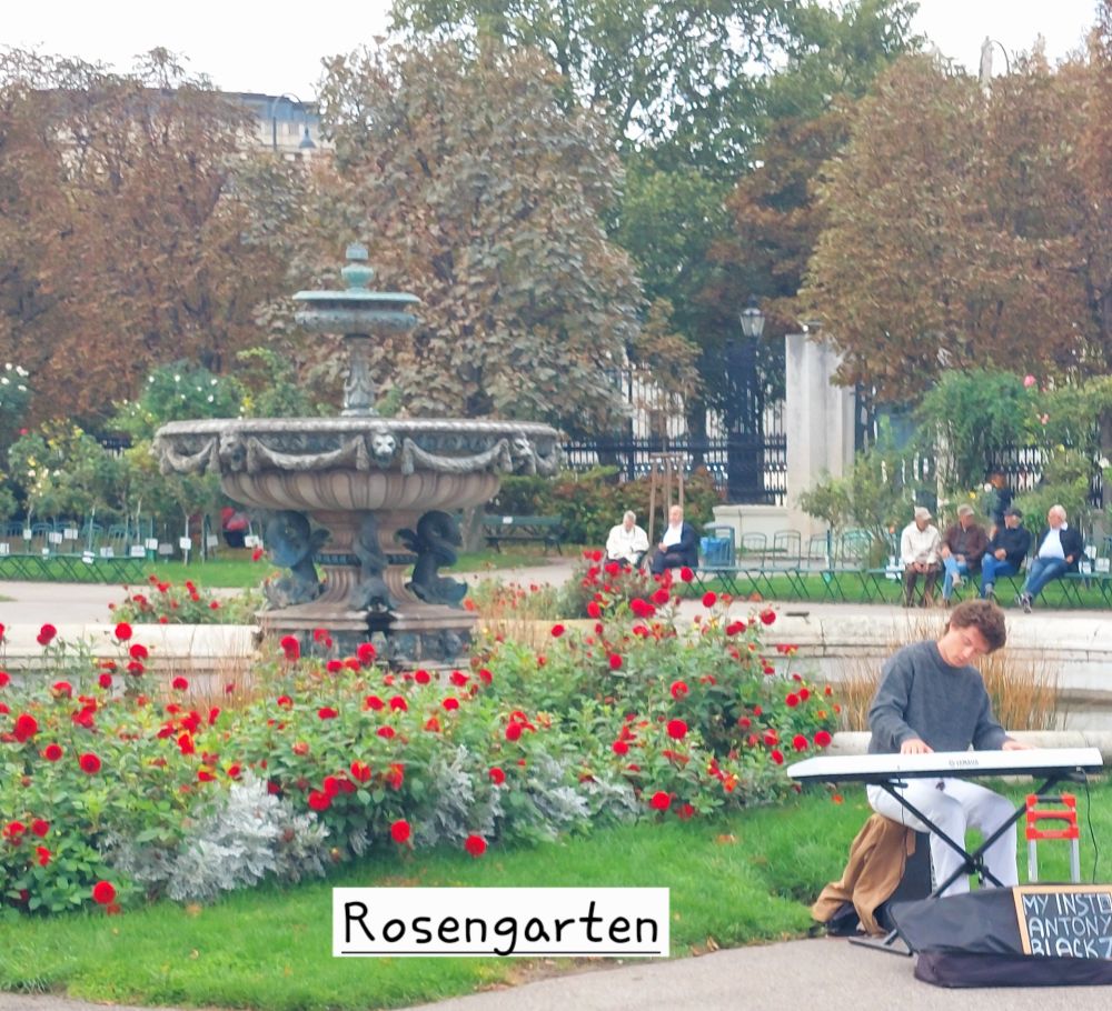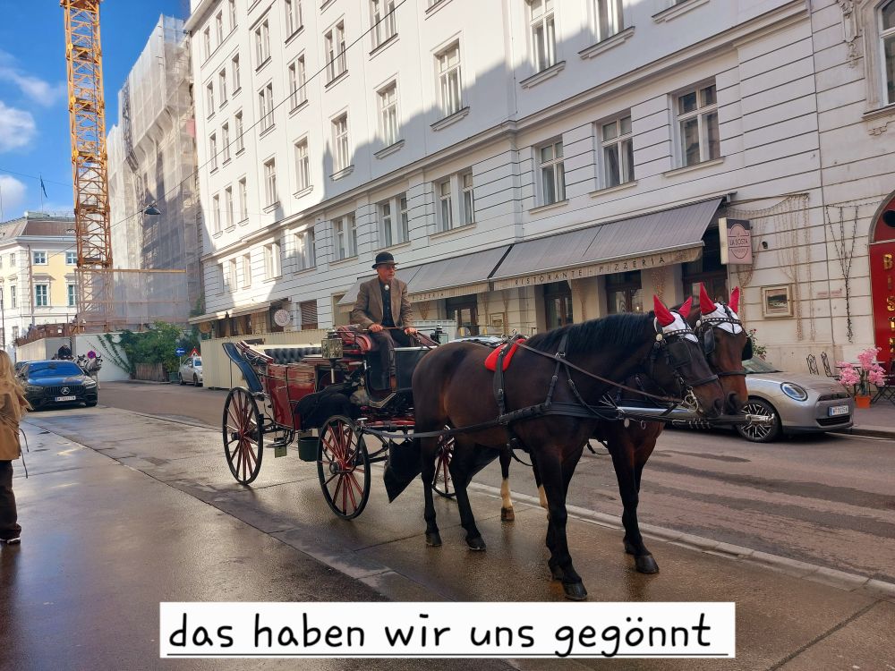 Die Verlängerung des Aufenthaltes hat sich gelohnt. Heute scheint die Sonne und es ist auch etwas wärmer geworden. Wir starten um 10 Uhr, kaufen uns wieder eine Tageskarte für die Öffis und fahren zuerst mit dem Bus und dann mit der U Bahn ins Zentrum von Wien. Unser 1. Stop ist die U Bahn Station Herrengarten. Von dort geht es am Central Cafe vorbei, wo sich, wie wohl immer, viele junge Leute anstellen, um einen Platz zu bekommen. Wir lassen wollen zum Ferstel, einer tollen Einkaufspassage, die an HH erinnert ( Hanseviertel etc.), danach geht es Richtung Hofburg. Dort tobt das Leben. Und weil das Wetter so schön ist, entscheiden wir uns spontan, eine Fiaker Fahrt zu machen. 20 Minuten lassen wir uns kutschieren Leider haben wir einen schweigsamen Kutscher erwischt, aber dafür genießen wir den Anblick der vielen schönen Gebäude, an denen wir vorbeifahren. Als wir am Paltz wieder ankommen, gehen wir zum Heldenplatz. Das Sissi Museum besuchen wir nicht ( da war ich mit Gabi und Marlies bereits schon einmal) . Vom Heldenplatz geht es durch den Volkspark und den Rosengarten. Wunderschön. Im Rosengarten gibt es mehrere Beete, mit Rosenstöcken, die in Gedenken an geliebte Verstorbene gepflanzt wurden. An jeder Rose steht ein Spruch (ähnlich wie auf einem Grabstein) und auch der Name der Rosenart.