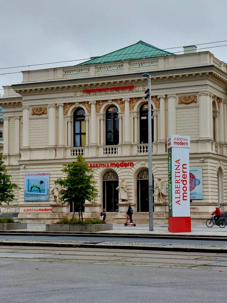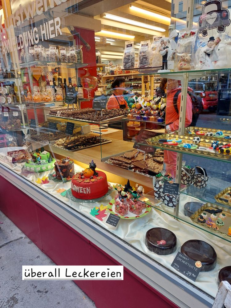 Als ich ankomme, nieselt es immer noch. Ich bin ein wenig zu früh, möchte eigentlich im Zuckerbäckerei noch eine Wiener Menge trinken…aber: überfüllt.