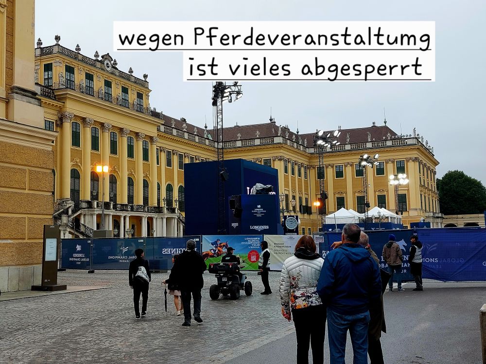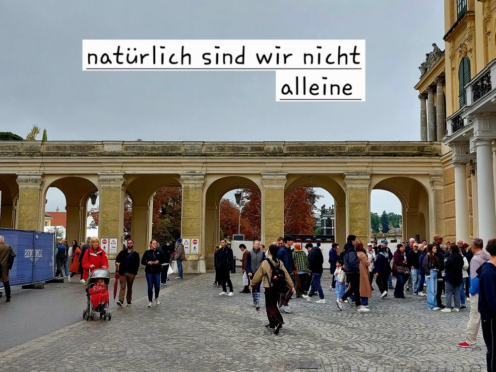 Als wir satt sind, gehen wir zur nächsten U Bahn Station und fahren nach Schönbrunn. Natürlich sind wir da nicht alleine. 😊